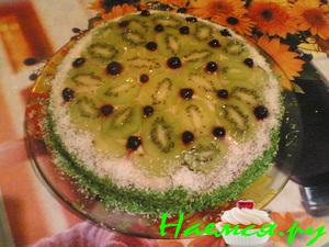 Нижний корж намазываем кремом, укладываем абрикосы, кладем второй корж, тоже намазываем кремом, укладываем апельсины и заливаем желе для торта.