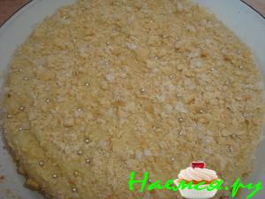 Разделить тесто на 6-8 частей, положить в холодильник. Каждую часть теста брать ( остальное лежит в холодильнике) и раскатать тонко, подсыпая мукой, выпекать коржи (200 градусов) пока слегка не подрумянятся (около 10 минут).