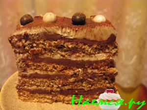 нижний корж я намазала кремом каппуччино.2-й шоколадным.3-сначала шоколадным затем каппуччино и 4-й верхний корж так же как и 3-й.