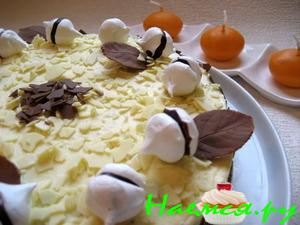 Украсить на свой вкус. У меня измельченные карамелизированные орехи и мак.