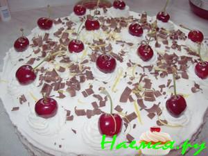 3/4 крема выкладываем на корж, накрываем вторым коржом и распределяем остатки крема. Посыпаем какао (мне хватило 1ст.лож.). С тавим торт в холодильник на 3-4 часа.