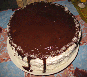 Выпекать корж на среднем огне до готовности, я проверяю шпажкой.Корж хорошо остудить, разрезать на две части. Сливки взбить, добавить сахарную пудру. Взбивать до загустения сливок. Нижний корж смазать взбитыми сливками, положить на него вторую часть коржа, верх торта смазать сливками и украсить по желанию. Тортик готовится очень быстро.И получается вкусный.