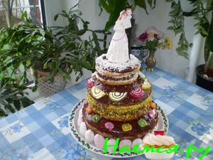 1)яйца+мед+сода+сливочное масло+сахар смешать и поставить на паровую баню (на медленный огонь примерно на минут 20) постоянно помешивая.Снимаем с огня, даем немного остыть и всыпаем муку. хорошо вымешиваем. Тесто мягкое податливое.Делим на три коржа. раскатываем каждый примерно толщиной в палец и печем в духовке предварительно ставим на противень или в форму бумагу для выпечки. 2)Сметану хорошо взбиваем с сахаром, трем туда целиком лимон на мелкую терку. 3)Каждый корж мажем хорошо сметанным кремом затем сверху слегка прожаренные орехи, и сверху половинки зефира (если толстенькие нужно разрезать их еще пополам) зефир укладываем плотно друг к другу.Сверху следующий корж + крем+ орехи+зефир. Сверху третий корж хорошо промазываем кремом и на ночь в холодильник! Утром можно при желании еще украсить глазурью: 4-5 столовых ложек молока+3 столовые ложки какао порошка+ 5 столовых ложек сахара все смешать и варить на медленном огне до закипания. закипело? снять добавить 50 гр.сливочного масла размешать и смазать торт!