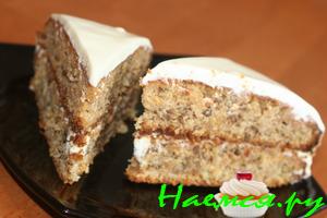 Сначала светлый корж. Хорошо промазываем кремом. Сверху темный корж, тоже смазываем кремом. И сверху последний светлый. Его тоже сверху можно промазать кремом. И в холодильник настаиваться.