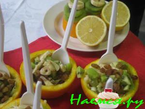 Бананы нарезать кружочками и выложить посередине. Далее персик-в центр. Вокруг него-половинки клубники, и по краям тортика кружочки киви.