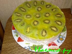 Так вот, достаем наш (пока что) торт и украшаем ягодками смородины! заливаем желе кипятком, даем ему чуток остыть, а затем покрываем наш торт и прячем в морозилку минутак на 20.