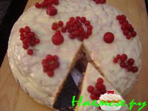6.В крем добавить вишни, перемешать и заполнить им "чашу"
