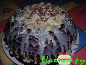 Остывший корж положить в форму. Бананы очистить, порезать вдоль и уложить слоем на корж. Сварить сок с сахаром и Tortenguss . Налить на бананы. Желатин залить водой. Сливки с сахаром взбить почти до готовности, добавить растворённый жел. ( выжать, нагреть), взбить до готовности. Выложить на бананы. Поставить на ночь в холодильник. Утром сварить глазурь. Сливки довести до кипения, добавить шоколад. В готовую массу (снять с огня) добавить желатин (выжатый). Помешивая дать немного охладиться и налить на торт. Поставить в холодильник на несколько часов. Можно украсить сверху взбитыми сливками и Микадо палочками. Попробуйте! Много возни, но оооооооооооочень вкусно.