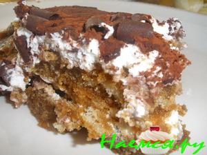 Выливать в форму слоями: маскарпоне, переложить слоем пропитанных савоярди или бисквитом.