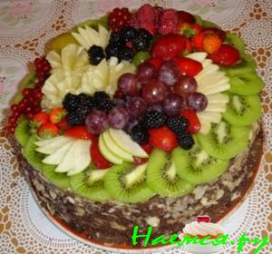Торт "Лукошко с фруктами" со взбитыми сливками