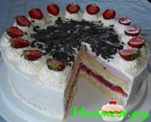 Намазываем бисквит одной третью взбитых сливок и положить сверху второй бисквит, разложить мандарины а сверху намазываем взбитые сливки с желатином положить третий бисквит Намазываем взбитыми сливкам и по усмотрению декорируeм мандаринами.