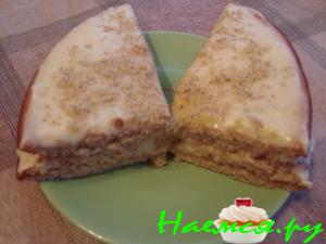 Пока бисквит выпекается приготовим крем. Для крема подойдет любая сметана, даже не жирная. Сметану смешиваем с сахаром и взбиваем до растворения сахара, крем готов!