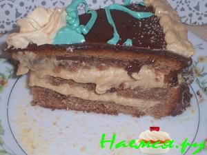 Потом коржи разрезаем и собираем торт: