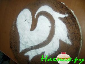 Намазать осторожно на сливочный крем, сверху положить второй корж.