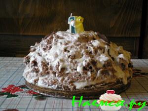 Собираем торт: корж промазать сметанным кремом, на него выложить половинки зефира. затем опять сметанный крем и второй корж.
