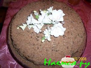 Взбить сгущёнку с маслом и промазать торт,предварительно