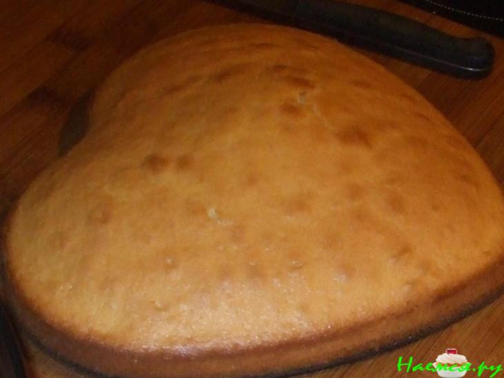 Извлечь корж из формы, остудить, разрезать на 2 коржа.