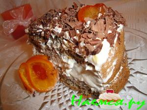 пропитать нижний корж сиропом/не очень обильно/смазать кремом и посыпать апельсиновой сладкой цедрой.