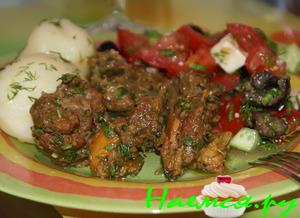 Телятина с вишней и розмарином в шоколадном соусе
