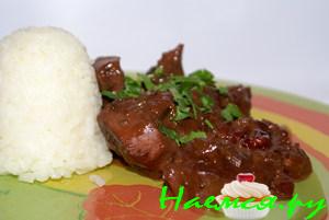 Телятину нарезать поперек волокон соломкой, как на бефстроганоф и замариновать в смеси приправ, бальзамического уксуса, мелко-нарезанного лука (0,5 головки), соли, раст. масла.
