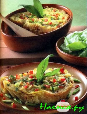 2) Натираем на крупной терке сырой картофель, отжимаем сок и наливаем сливки. Добиваем в картофель муку и взбитые желтки, заправляем перцем, солью. Хорошенько взбиваем белки и также вливаем их в картофельную массу.