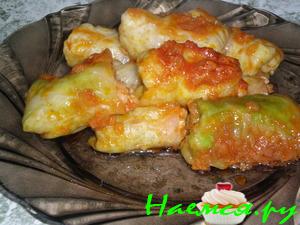 Для соуса: Порезать мелко луковицу и слегка припустить его в небольшом количестве растительного масла, добавить морковь, через 1-2- минуты помидоры ,.протушить.затем добавить специи, соль, 1 л. воды., в которой варилась капуста), сметану дать закипеть.