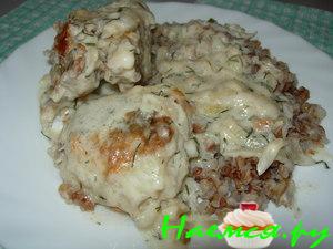 Лук режем полукольцами, обжариваем в небольшом количестве масла 2-3 мин., затем добавляем сметану, солим и, помешивая, ждём 2-3 мин., пока соус немного загустеет.