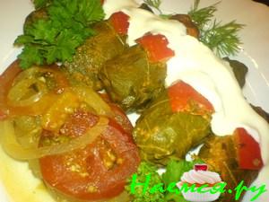 По истечении указанного времени накладываем долму в тарелочки и подаем к столу с соусом.
