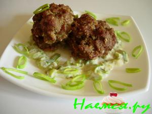 Слепить из фарша шарики величиной с грецкий орех. Фрикадельки обвалять в муке. Порциями обжарить в разогретом масле до золотистого цвета,8-9 мин. Подавать с соусом.