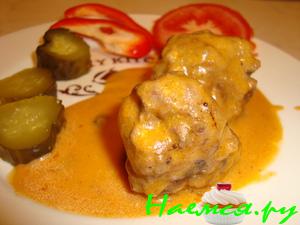 Залить получившимся соусом пропеченые шарики и запечь в духовке 10-15 минут. Соус должен слегка увариться.