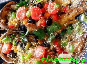 Рыба, запеченная с томатами-черри, оливками и зеленью
