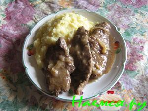 На тарелку можно положить отдельно кусочки печени и соус.Очень ароматно!