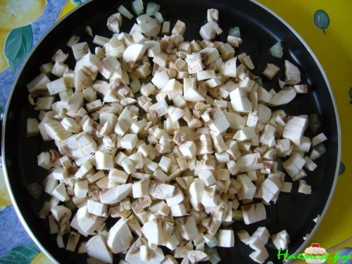 грибы и сельдерей порезать мелко и в сковороду