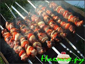 И еще один совет напоследок: Вы, наверное, не раз видели, как заправский «шашлычник» сбрызгивает шашлык водой или вином из бутылки? Видели? Вот! В этом и кроется самая распространенная ошибка. Если вы присмотритесь к манипуляциям профессионала, то поймете, что сбрызгивает он вовсе не шашлык, а угли, пытаясь таким образом притушить наиболее сильно разгорающиеся. А вот на само мясо попадать ни в коем случае нельзя, иначе температура на поверхности мяса станет неравномерной и оно либо не прожарится, либо подгорит.
