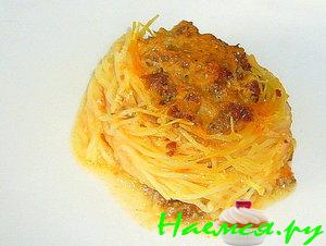 "Гнёзда" разместить в сотейнике или на сковороде с высокими краями на расстоянии 0,5см. друг от друга, залить их на 3/4 высоты кипящей подсоленной водой, накрыть крышкой,дать закипеть и припускать на медленном огне в течении 4-5 минут.Затем "Гнёзда" аккуратно перевернуть лопаточкой или большой ложкой (в сотейнике должна быть ещё жидкость, если она выкипела, то необходимо долить до 1/4 высоты "Гнезда").