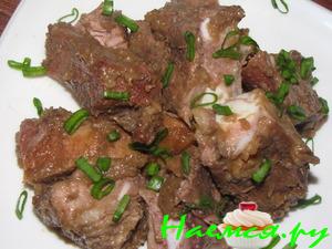 Разогреть духовку до 200С. Ребрышки выложить на противень, сверху полить 3-4 ст.л. маринада. Запекать 45 минут, регулярно поливая выделившимся соком.