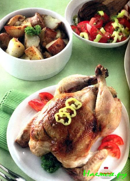 2. Внутри и снаружи натрите курицу солью, присыпьте майораном.