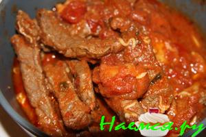 Сверху кладем мясо и овощи