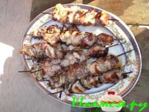 Посолить,поперчить,помазать горчицей,затем майонезом,чеснок выдавить на чеснокодавке и тоже размазать по мясу.