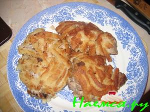 Мясо мелко порезать,как беф-строганов.Перемешать с мелко порезанным луком.Залить смесью из яиц,майонеза и крахмала,посолить,поперчить.Всё перемешать.