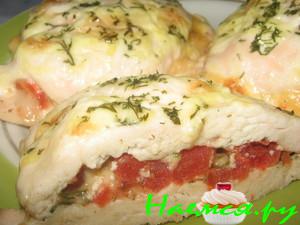 На на один край подготовленного филе выложить кружок помидора и накрыть второй половиной.