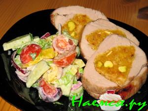 Свиная вырезка с помидорами и шампиньонами