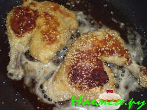 Обжарить окорочка на хорошо разогретой с растительным маслом сковороде до золотистой корочки.