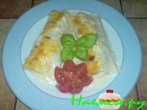 на 6 ломтиков ветчины,свернём её в трубочки