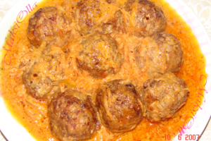 Складываем на противень и заливаем смесью томатной пасты и сметаны.