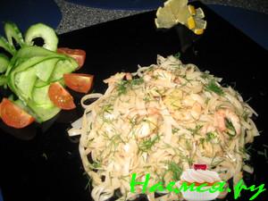 Затем промыть, дать стечь воде и полить ложкой раст.масла и аккуратно размешать, чтоб вермишель не слиплась.