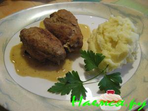 В фольгу выложить 1-м слоем картошку, порезанную толстыми ломтями и немного отваренную в соленой воде, 2-м слоем телятину или свинину, обжаренную по полминутки на сильном огне (чтоб корочка получилась), залить соусом: обжарить грибы добавить сливки, уварить до половины объема, посолить, добавить свежий укроп и специи. Завернуть фольгу мешочком, выпекать в духовке.