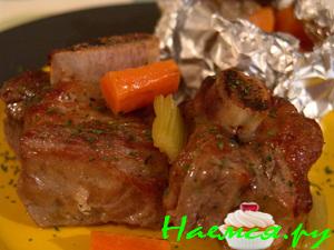 Отваренные и высушенные ребра намазать кетчупом и запекать с 2 сторон (10-15 минут)