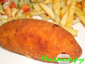 Жарим на растительном масле,на небольшом(а потом и маленьком) огне-минут 10-15 на одной стороне,а затем,так же,на другой. Крышкой я не закрываю,дабы котлета оставалась на 100% хрустящей.