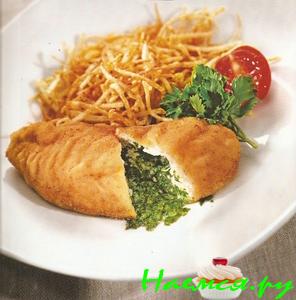 Панировка вполне заменит вам гарнир, блюдо очень сытное с тонким ароматом зелени и сырной ноткой.